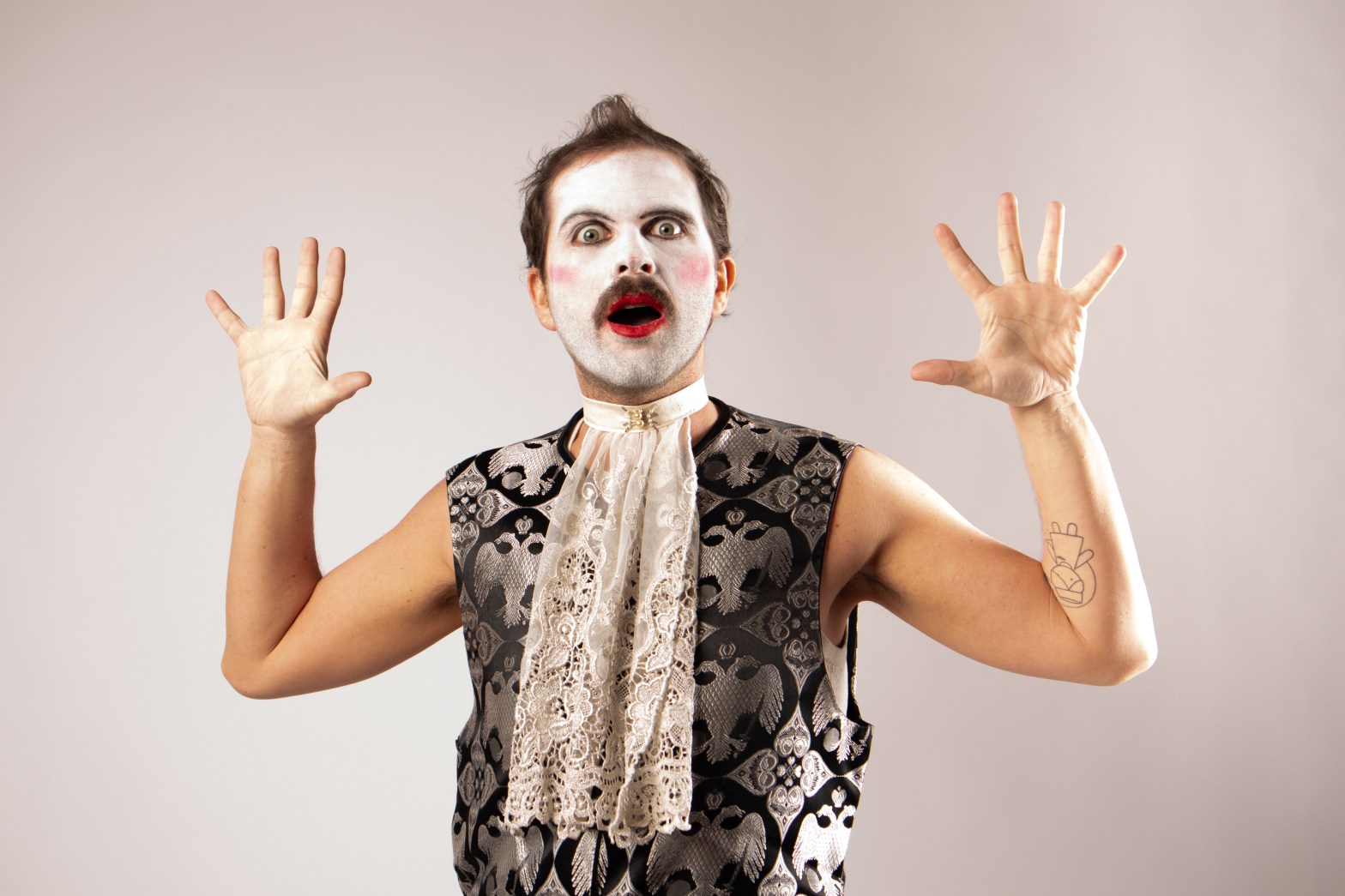 It’s the story of a man and his family after Tartuffe arrives in town. The father, Orgon (Nathaniel Crosby Fishburn) and his mother, Pernelle (Dave Allison-played the role in drag), are mesmerized by Tartuffe (Connor Hogan). Orgon would do and does do anything and everything for him. But his daughters, Damis and Mariane, his sister Cleante, and his wife, Elmire, all see through the thin veneer of the lying, self-serving Tartuffe.